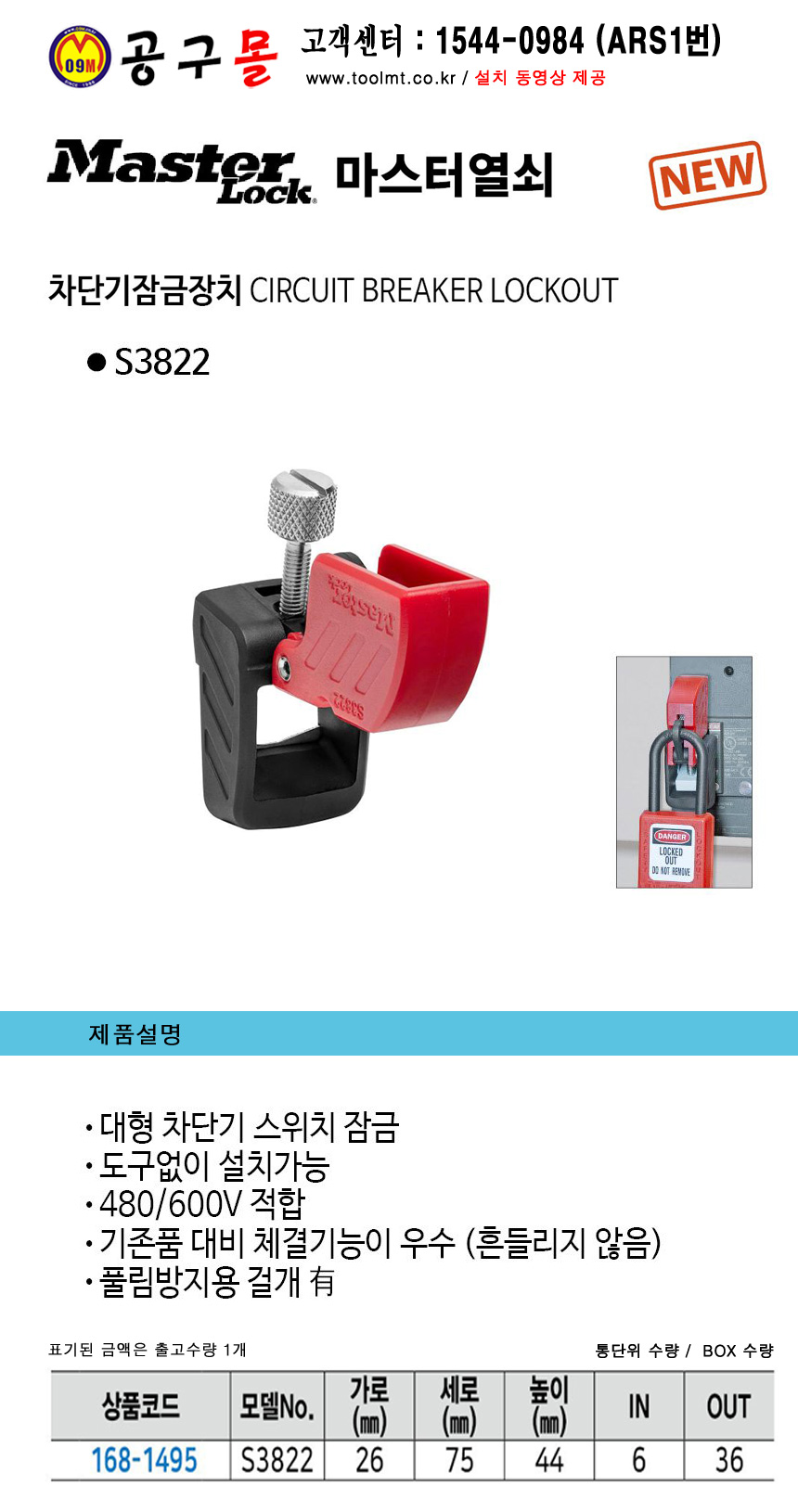 차단기잠금장치 S3822 (480/600V용) 마스터열쇠,울산철물,공구몰,1681495