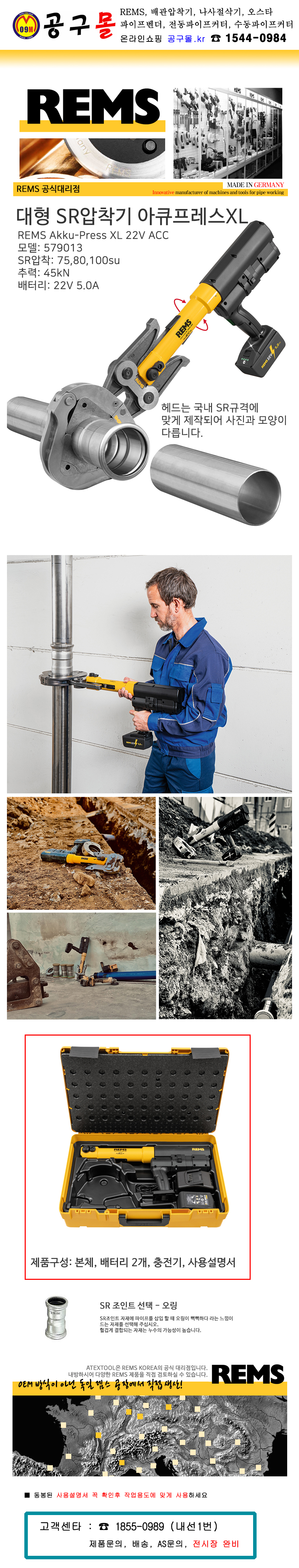 품절,렘스 아큐프레스XL 22V ACC SR풀세트 D1 579013 R220 (21.6V,5.0Ah,2B)(80,100수) 충전 유압압착기(대형) 링타입 REMS