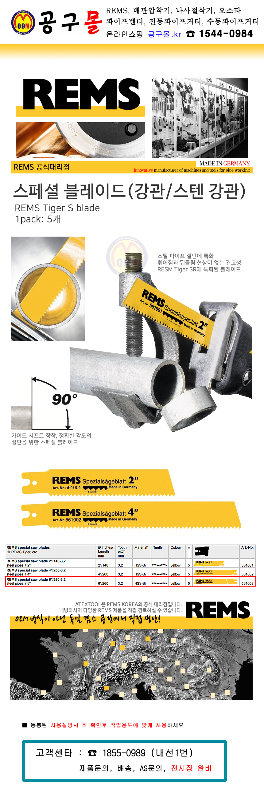 렘스 컷쏘날(강관용/스텐용) 6 561008 R05 노랑(1팩5개) 260mm (560026용) REMS, 공구몰, 독일제조
