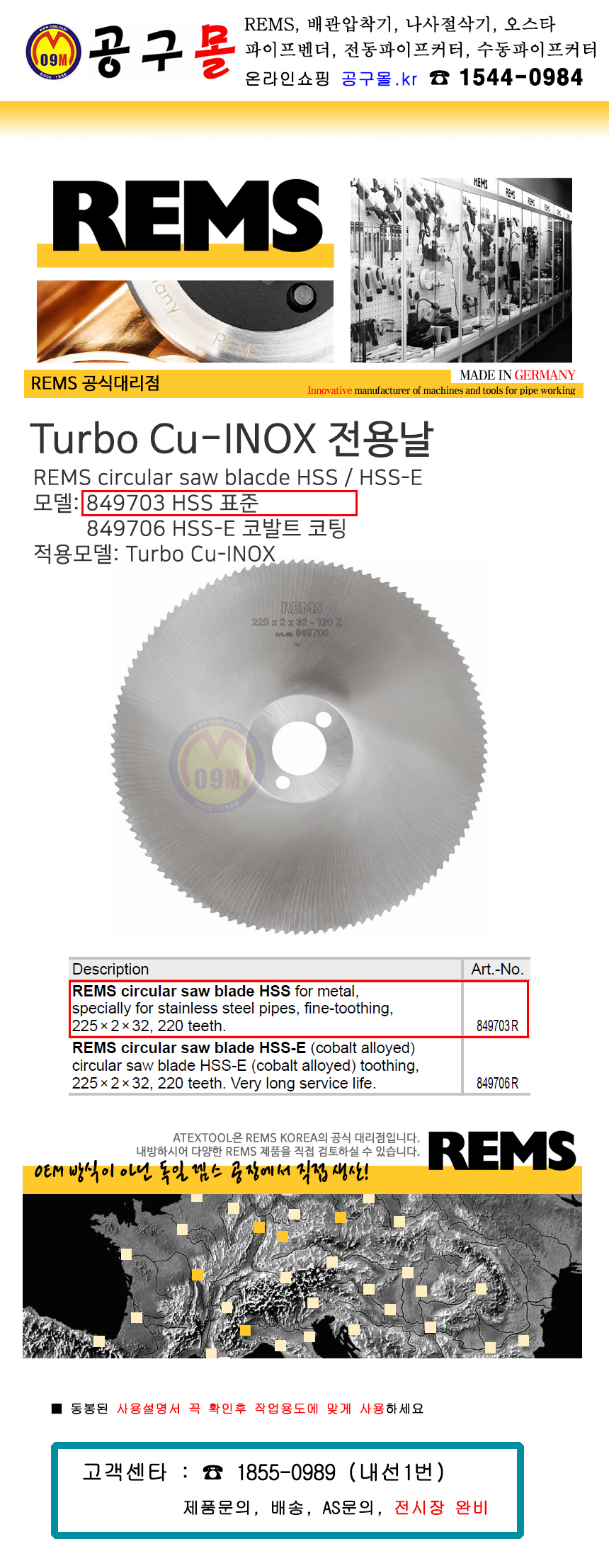 렘스 HSS-K (터보K전용) 849700 R, 78mm (849007용) 절삭유사용 REMS , 공구몰, 독일제조