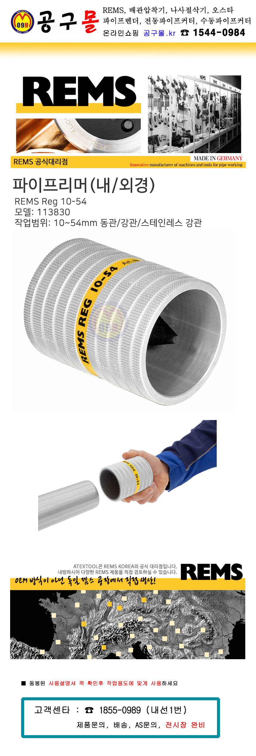 렘스 파이프리머(내경,외경) REG 10-54 113830 R, 10~54mm REMS, 내경리머, 외경리머, 공구몰, 독일제조