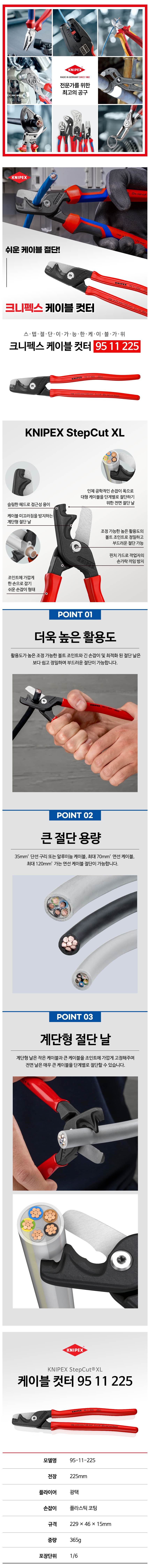 크니펙스 케이블컷터(STEP CUT) 95-11-225, (전장225mm) 전선커터 KNIPEX 독일공구, 수공구, 공구몰추천 101013360001