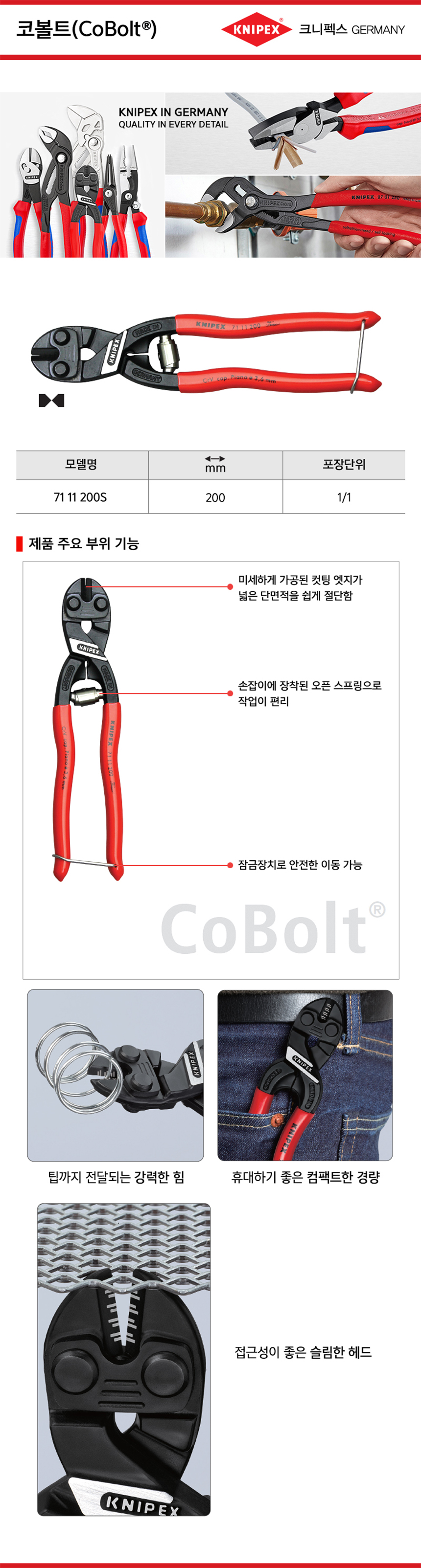 품절,크니펙스 콤팩트 볼트컷터 71-11-200S KNIPEX, 독일공구, 수공구 공구몰 추천 ,101001000333