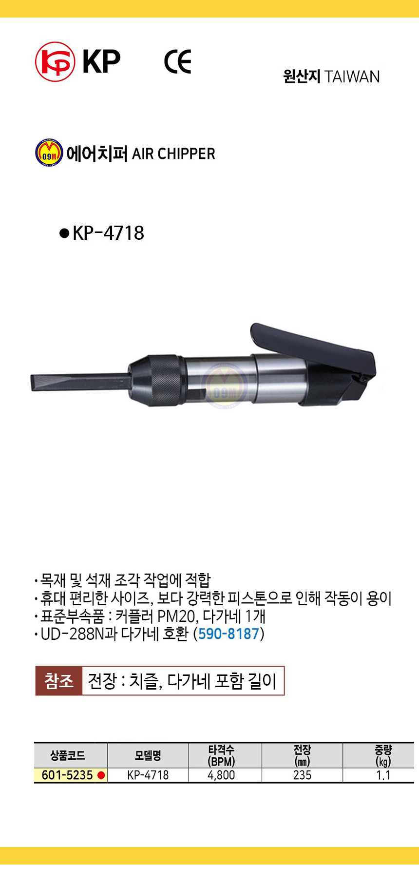 KP 에어치퍼 KP-4718 RPM 4800 235mm 1.1Kg 에어공구, 에어해머, 다가네 공구몰 601-5235