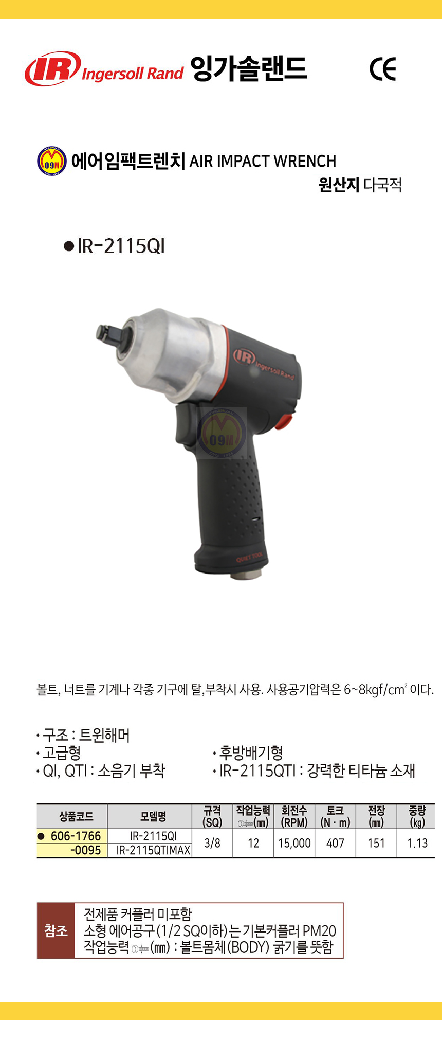 본 제품은 에어임팩트렌치 IR-2115QI (3/8SQ) 출고 됩니다 (이점 착오 없으시길 바람니다)