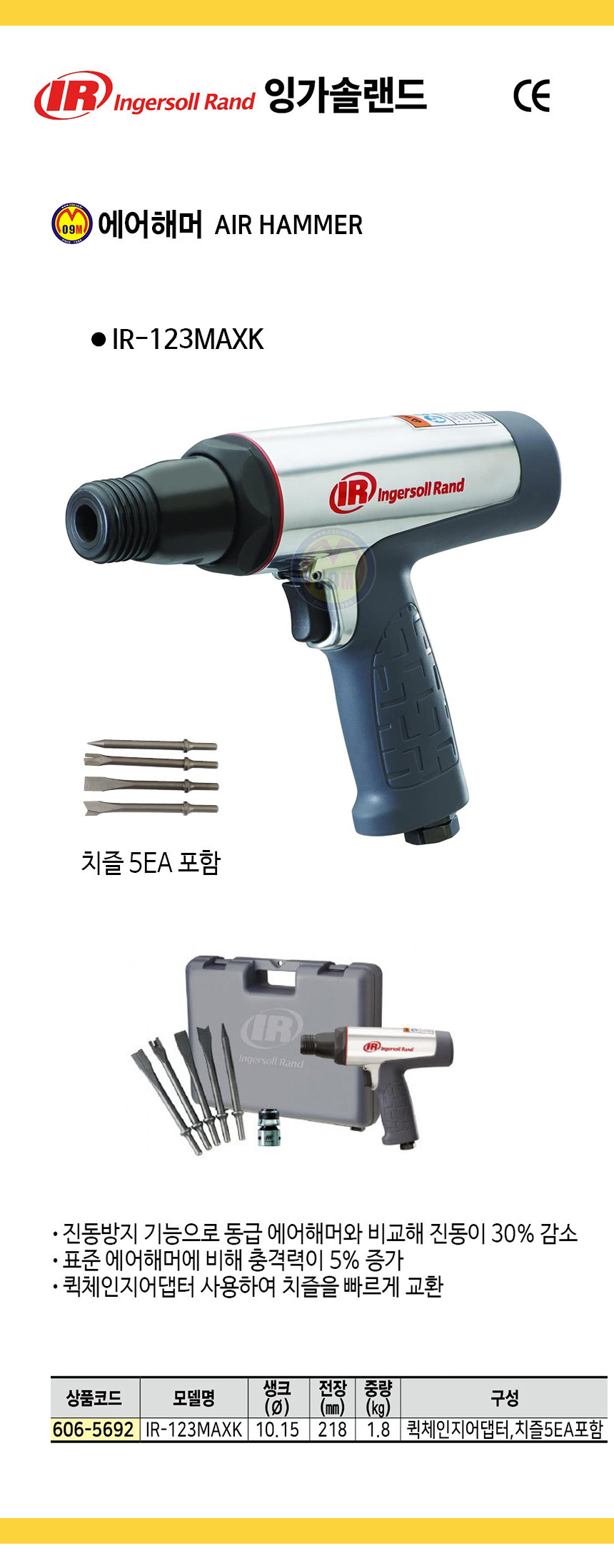 잉가솔랜드 에어해머 IR-123MAXK 에어햄머, INGERSOLL RAND 공구몰 추천 C606-5692