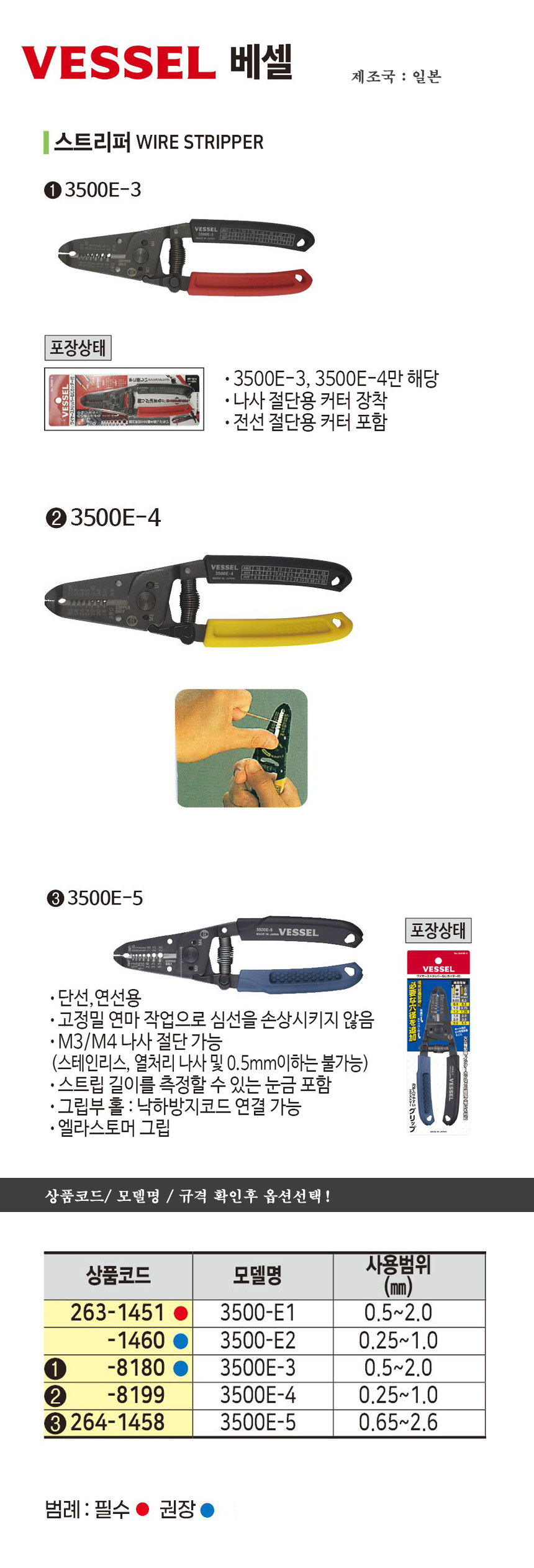 베셀 수동스트립퍼 3500E-4(0.25~1.0mm) VESSEL