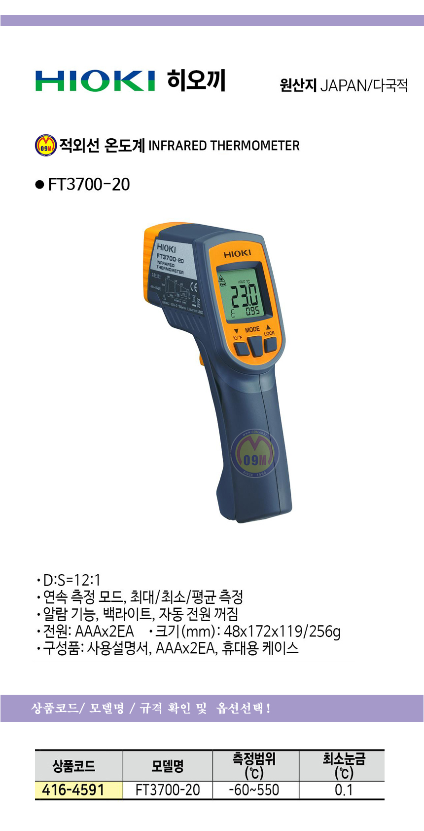 히오끼 적외선온도계 FT3700-20(-60-550도) HIOKI ,테스타기, 공구몰 416-4591