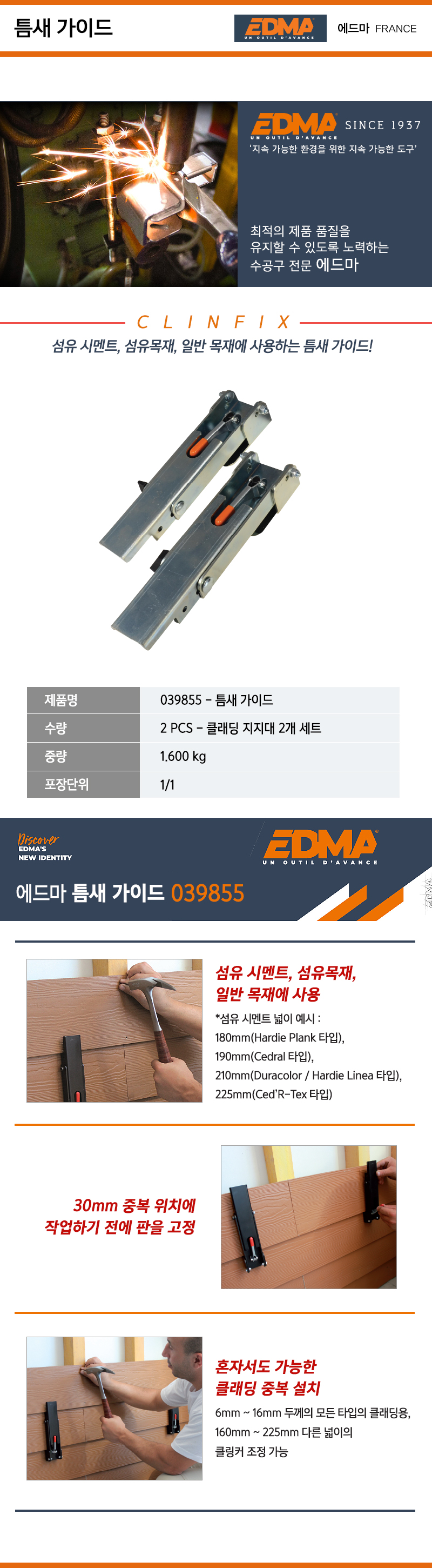 EDMA 틈새가이드 039855 2개세트, 160-225mm 에드마 공구몰