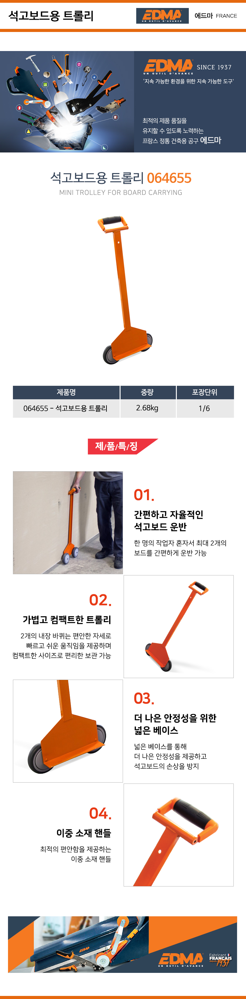 EDMA 석고보드 (합판) 트롤리 064655 에드마 공구몰