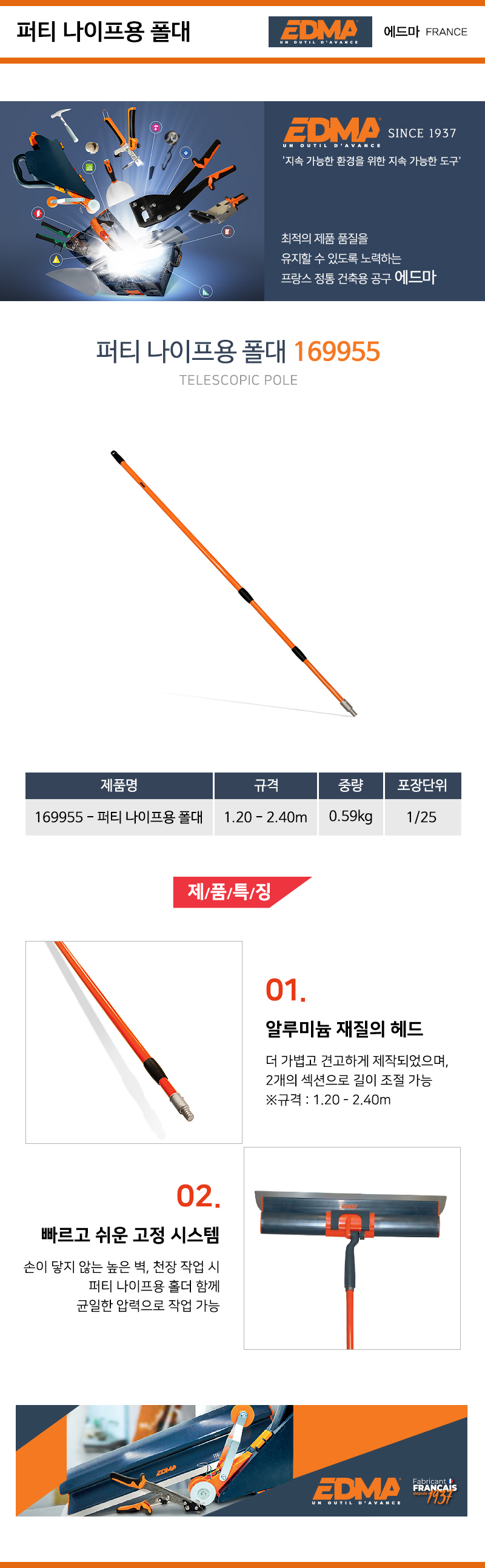 EDMA 퍼티나이프용폴대 169955 (1.2M-2.4M) 청소브러쉬 별매, 에드마 공구몰