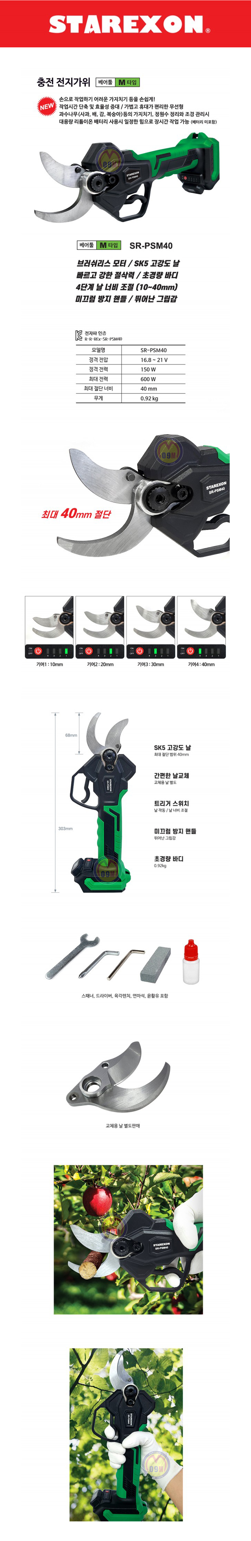 스타렉슨 충전전지가위(베어툴) SR-PSM40 (M타입) 21V, 최대 40mm 절단, STAREXON