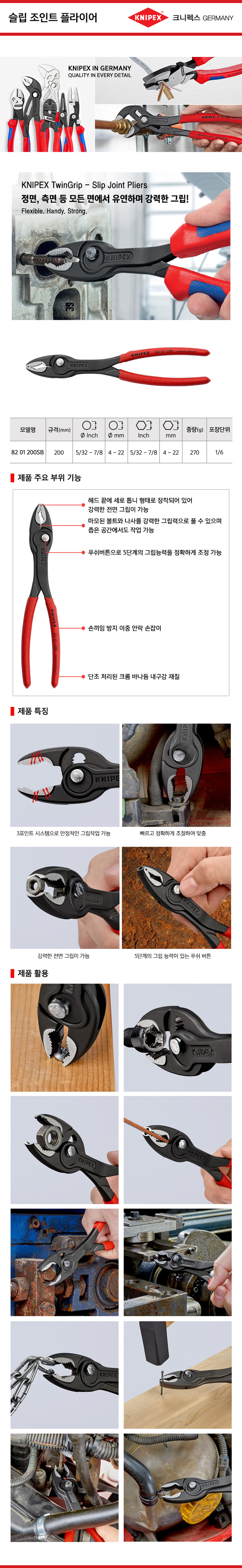 크니펙스 트윈그립플라이어(나사제거) 82-01-150, 200SB, 250SB Knipex 공구몰 101001029139