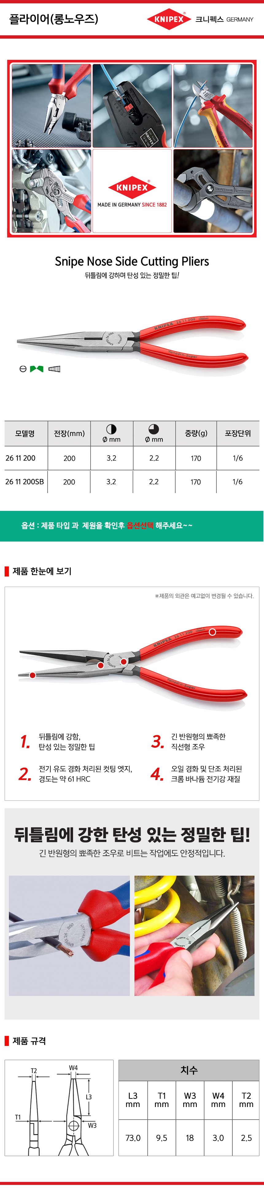 크니펙스 플라이어(롱노우즈) 25-02-140, 25-02-160 Knipex 롱로우즈 공구몰 101001020066