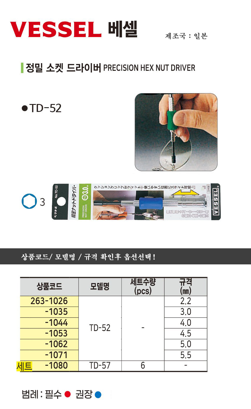 베셀 정밀 복스 드라이버 TD-52x2.2mm/ TD-52x5.5mm (VESSEL)