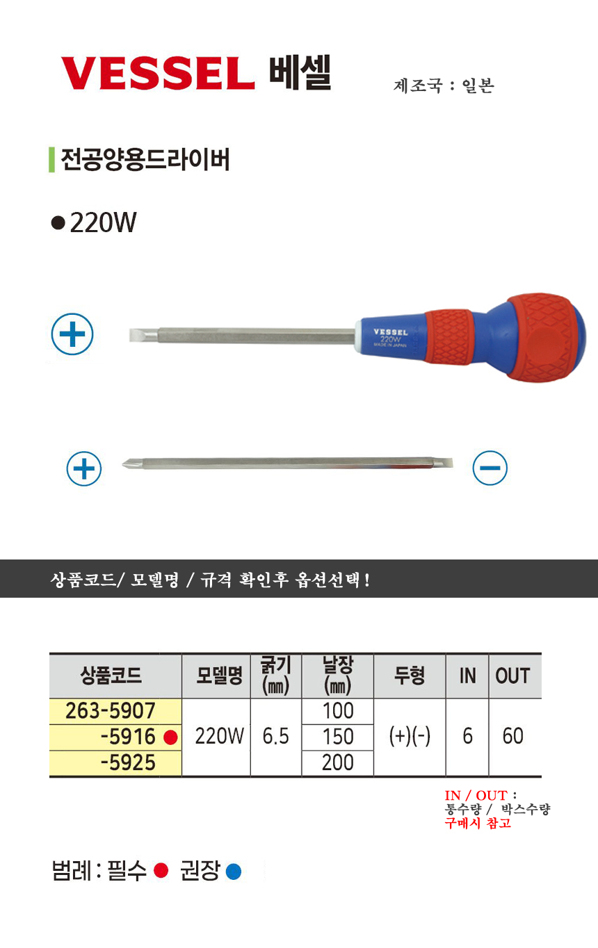 베셀 전공양용드라이버 220W 100K/ 150K/ 200K VESSEL
