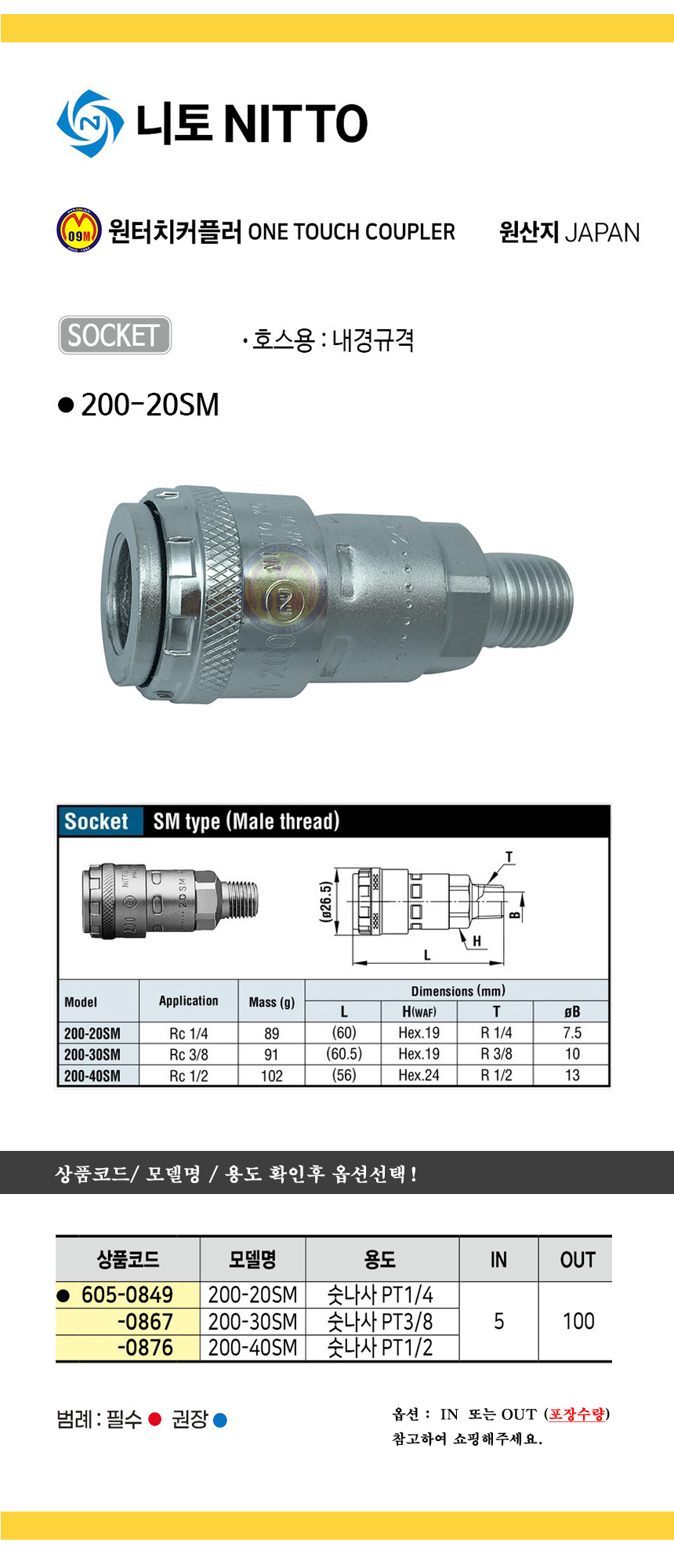 니토 원터치커플러(200) 20SM/ 30SM/ 40SM NITTO 공구몰 SOCKET 605-0849