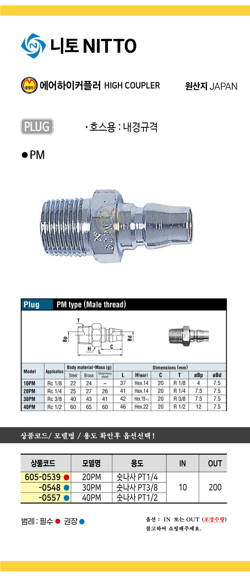 니토 하이커플러(PM) 20PM/ 30PM/ 40PM NITTO 공구몰 PLUG 605-0539