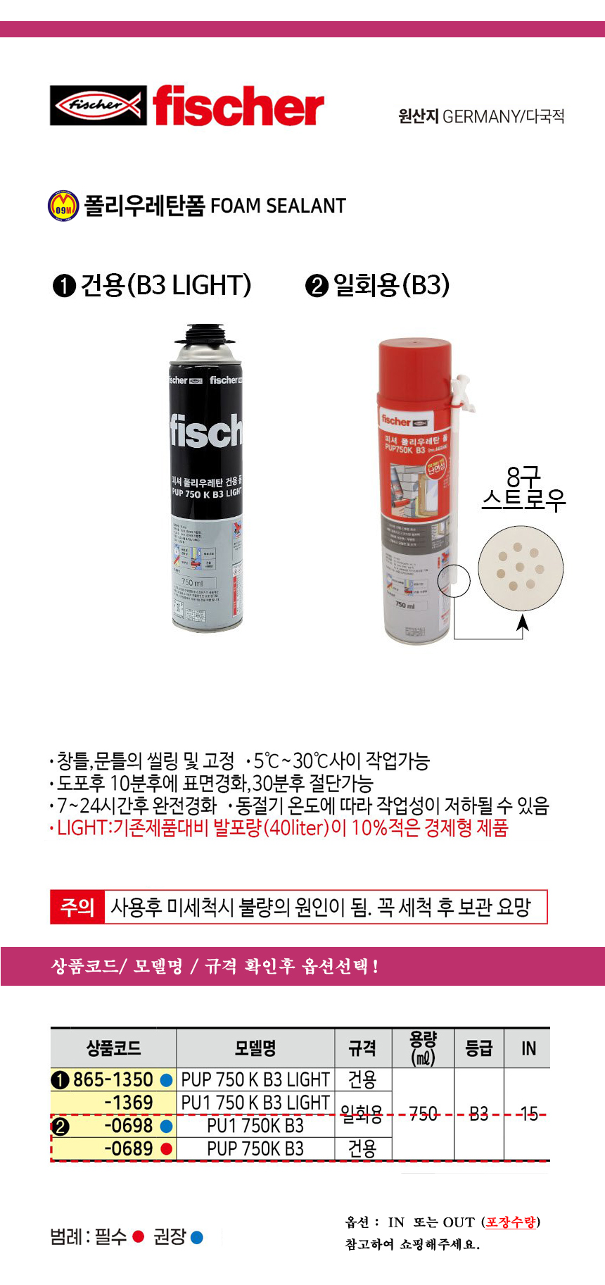 피셔 폴리우레탄폼(난연성) 건용/ PUP 750 B2 / NO.44503 fischer, 공구몰 865-0351