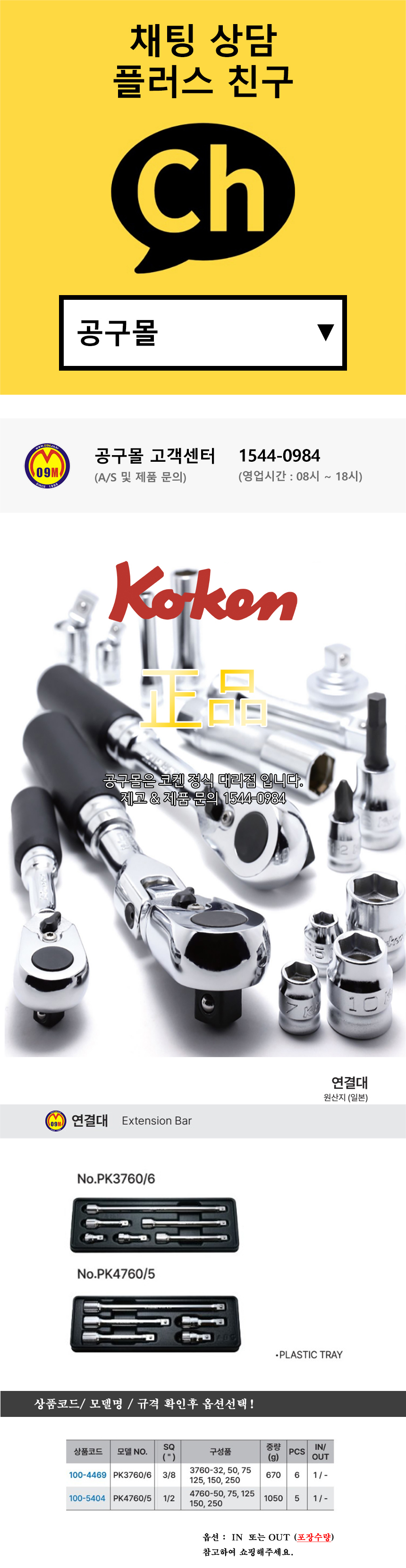 코켄 연결대세트 PK3760/6 (3/8)/ PK4706/5 (1/2) KOKEN impact Extension Bar 공구몰 100-4469