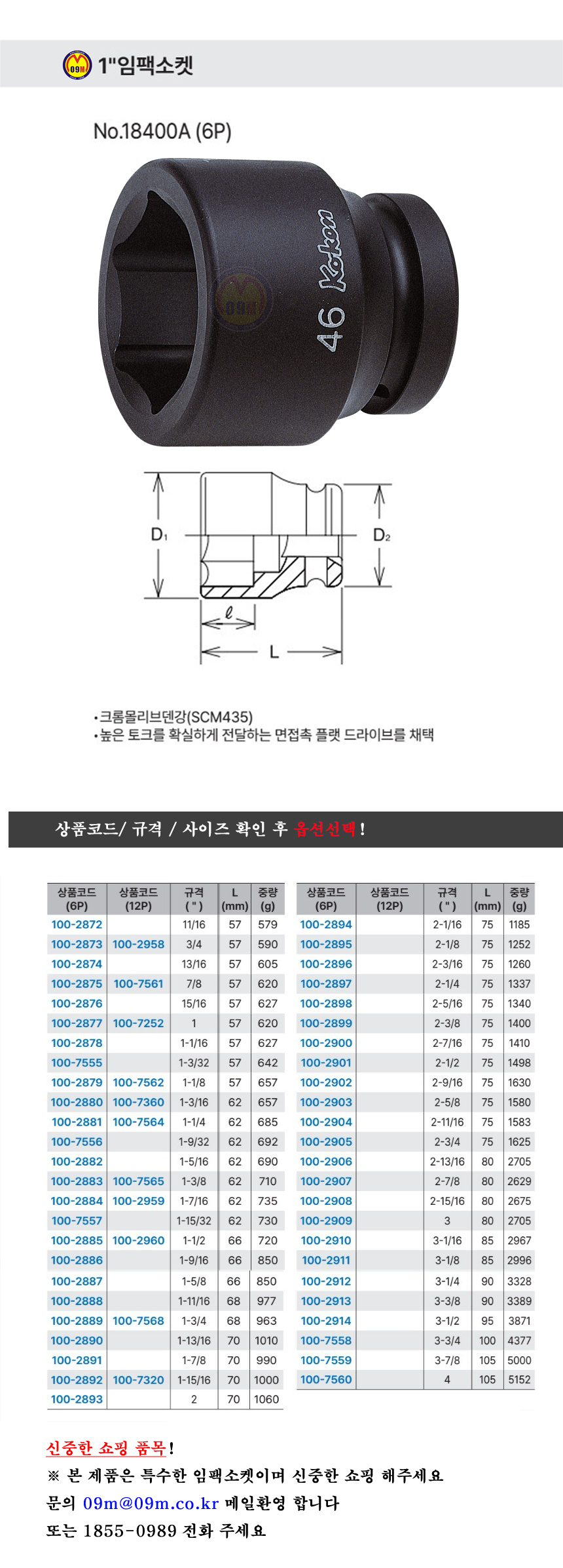 코켄 임팩소켓 18400A 6P 1inchx(3-1/8, 3-1/2inch) KOKEN, 대형소켓 100-2913