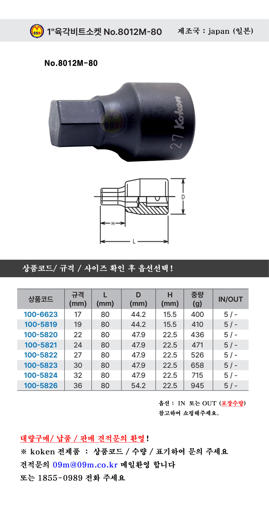 제조사ㆍ원산지 : 코켄.com (KOKEN) 공구몰,소켓세트 / 일본